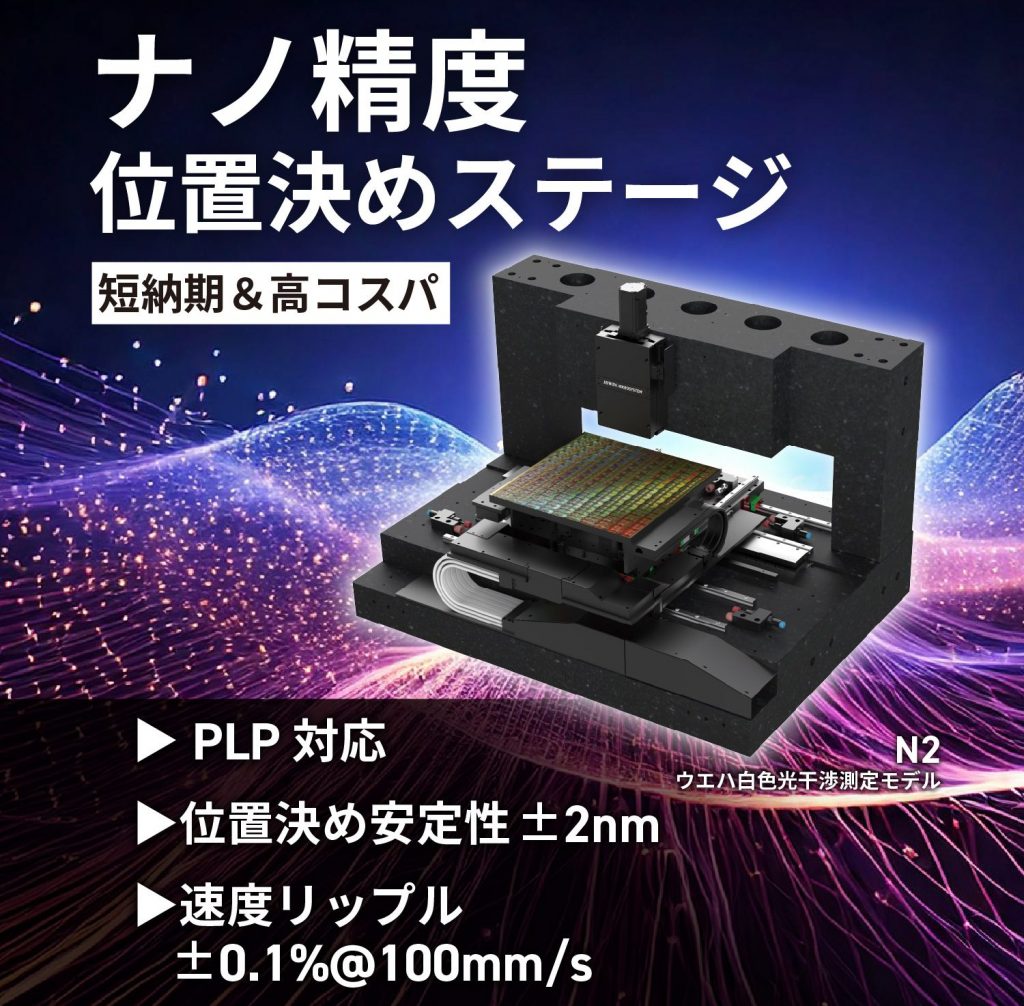 半導体製造の精度要求に応えるナノ精度ステージ±2 nmの位置決め安定性と、100mm/s時で0.1%の速度リップルを実現。