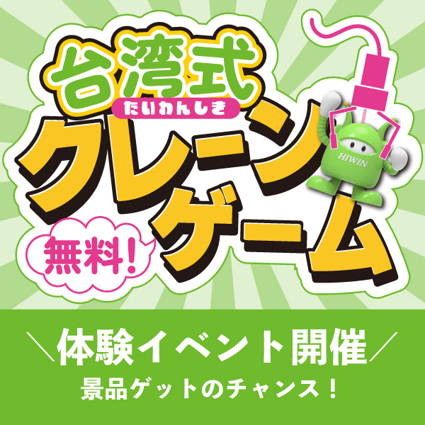 会期最終日に、 台湾式クレーンゲームを体験いただけるゲームブースをご用意します。クレーンゲームには当社製単軸ロボットやACサーボモーター、ドライバーなどを採用し、 景品を掴んだ後に「投げる・離す」動作がある台湾式を再現。 一味ちがうクレーンゲームに挑戦してみませんか?