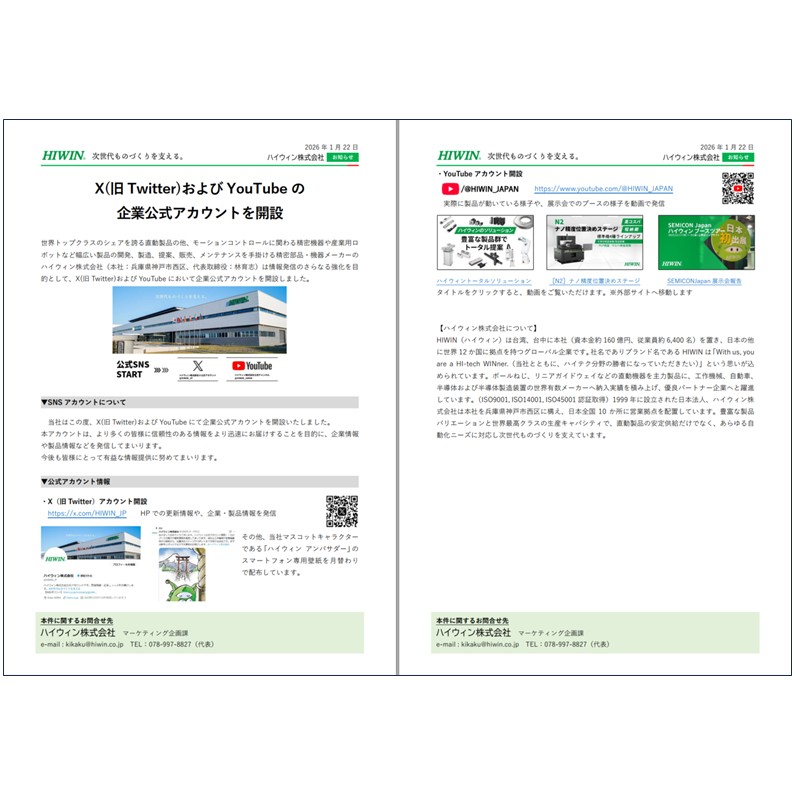 ハイウィン株式会社は、情報発信のさらなる強化を目的として、X(旧Twitter)およびYouTubeにおいて企業公式アカウントを開設しました。